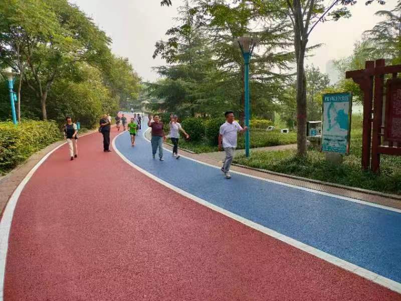 本網(wǎng)訊 初秋的邯鄲,天高氣爽。清晨的龍湖,涼風習習。公園內,彩色的環(huán)形跑道,處處歡聲笑語,隨處可見穿著白色T恤衫的“運動健將”揮汗前行。
